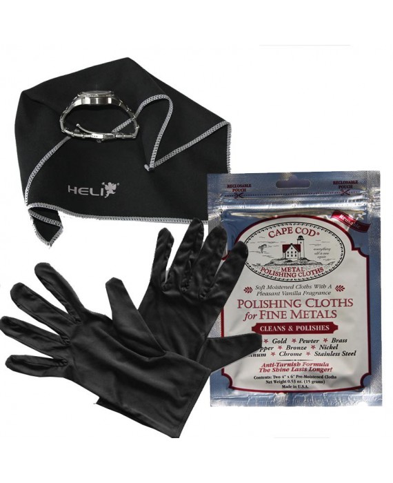 Ultimate accessory pack for watch cleaning and polishing : CAPE COD from USA, microfiber HELI made in Germany XL size 22x22cm. And Pair of gloves (microfiber, size L).