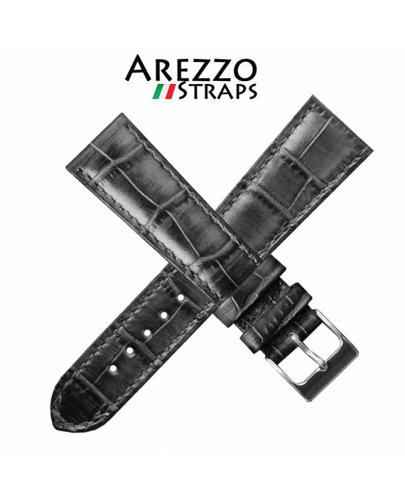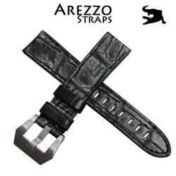 Original Watchstrap Arezzo DARKCROCO crocodile black from Missisipi. Genuine crocodile with lining rubber, hand made in Italy. Stainless-steel buckle.