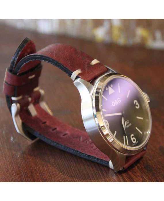 Watchstrap AREZZO SAFARI. Vegetable tanned split buffalo leather with vintage stiching. Cut edge with 4mm thickness. Lining with cow leather, hypoallergenic....