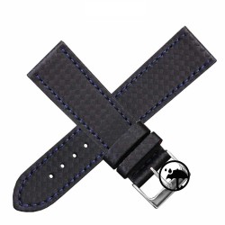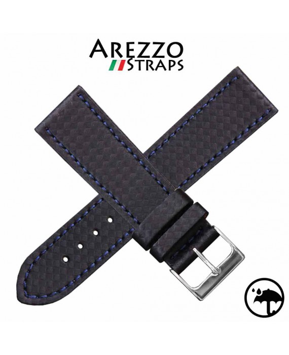 Watchstrap AREZZO RACING WATERPROOF . Vegetable tanned black leather with CARBON grain. Cut edge with 4mm thickness. Lining with rubber covered leather. Contrast...