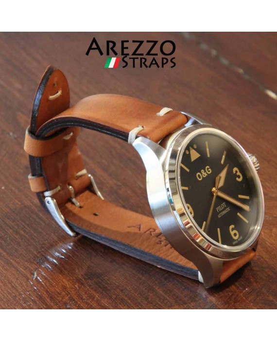 Original watchstrap Arezzo MARINA is perfect for all military watch. Hand made in Italy with genuine Cognac leather. Oval holes are compatible with OEM Panerai...