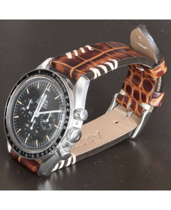 Original Watchstrap Arezzo DARKCROCO crocodile Honey light brown from Missisipi. Genuine crocodile with lining rubber, hand made in Italy. Stainless-steel buckle.