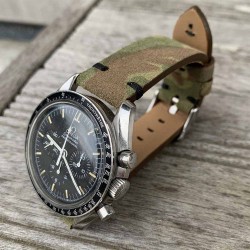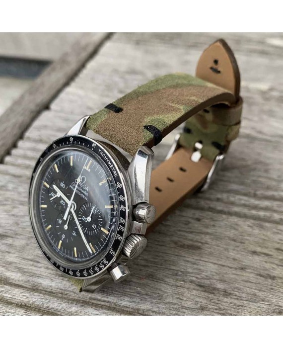 Atelier LBAM watchband with an original and exclusive design, made of vegetable tanned cowhide (nubuck). The leather has a Camouflage print on the surface. Cut edge...