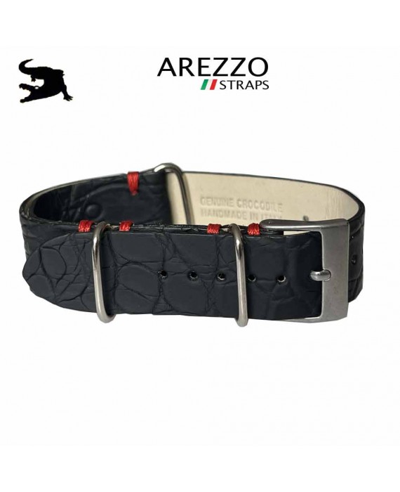 Original watchstrap Arezzo NATO CROCODILE 20mm is perfect for all vintage watch like Rolex, Omega Speedmaster. Hand made in Italy with crocodile, and leather lining. Stainless steel buckle.