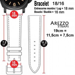 AREZZO watch straps are hand made in Italy. All leathers (cow, buffalo, horse etc.) are vegetable tanned with natural products. Original design for classic, vintage or sport watches. Due to natural finish, straps are not waterproof.