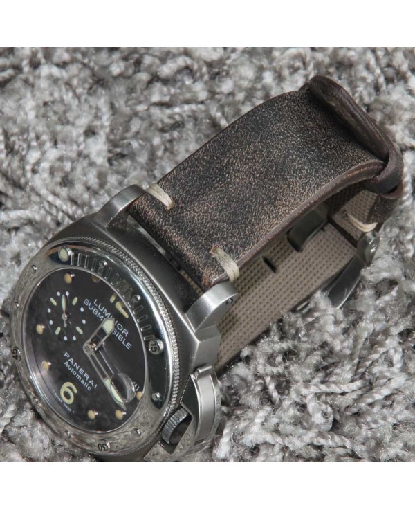 Original Watchstrap Arezzo TOPGUN dark brown. Genuine leather with lining leather, hand made in Italy. Oval Holes are compatible with OEM Panerai buckle. Brushed buckle include and removable.