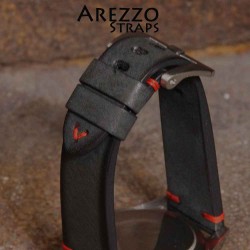 Watchstrap Arezzo BRUTUS 20mm Vintage black Leather red stiches
