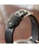 Watchstrap AREZZO BUFFALO. Vegetable tanned buffalo leather with vintage stiching. Oiled on top, for a special grain. Cut edge with 4mm padding. Lining with same leather, hypoallergenic. Stainless steel buckle. For vintage or classic watches.