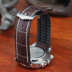 Hirsch Watchstrap GEORGE 20mm is 300 m Water-Resistant. The contemporary evolution of one of the world’s most beautiful bracelet designs. Aesthetics married to optimum reliability. This bracelet derives its incomparable charm from the alligator-embossed “Tuscany” calfskin, with the accentuated contrast stitching and obvious edge. Quick release system included.