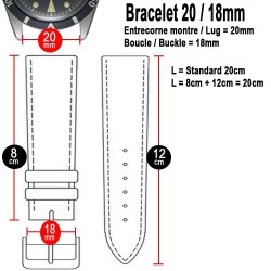Watchstrap Hirsch ROBBY 20mm. The stuff that adventure are made of, active, dynamic. Sturdy, full-grained Italian calfskin in a perforated sailcloth look, coloured HIRSCH Premium Caoutchouc core. Quick release system included.