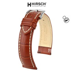 Hirsch Watchstrap Modena gold brown 24mm, casual and sport. Natural leather in a way that combines the aesthetic characteristics of alligator leather with the extreme durability of the best Italian calf skin. The water- and sweat-proof Softglove lining leather ensures the greatest comfort. Quick release system included.