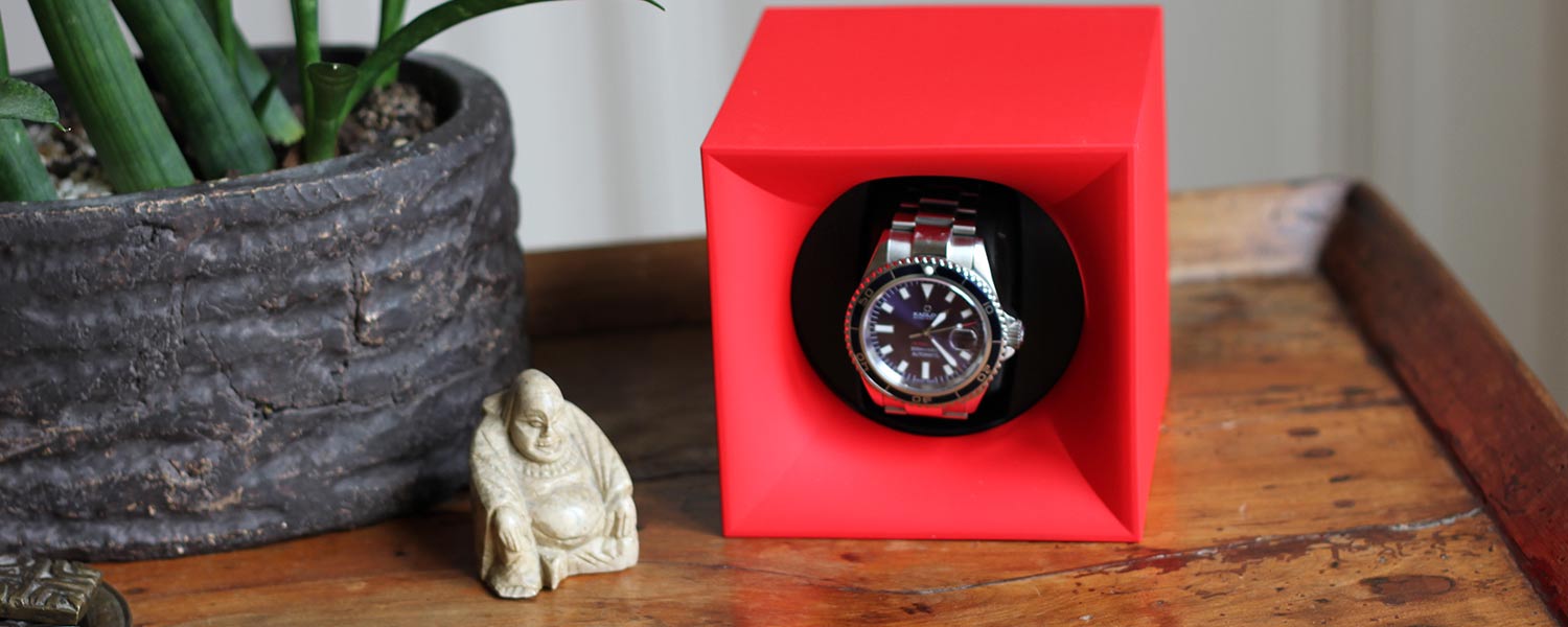 - The STARTBOX watch winder has been specially designed for storing and rewinding all automatic watches. The STARTBOX watch winder is a cube measuring 11.2 centimetres (4.45 inches). It guarantees a set number of