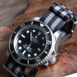 Bracelet NATO noir et gris 21mm nylon original ideal pour certaines SEADWELLER rolex en 21mm. Facile à installer, il est résistant à l'eau et...