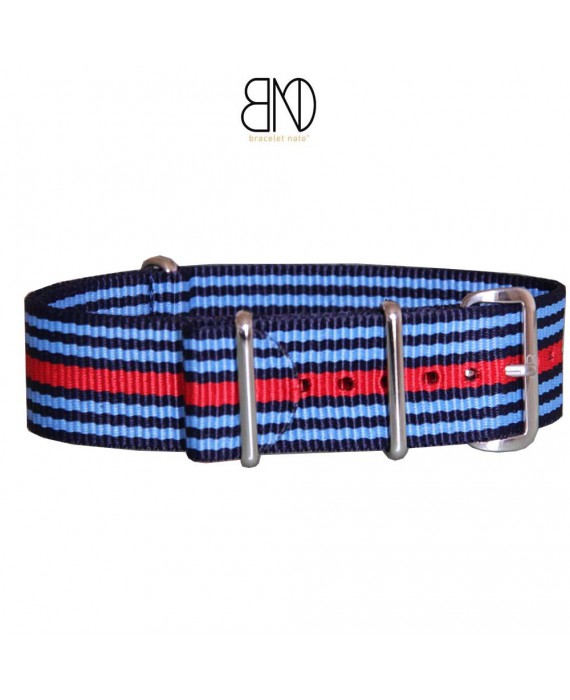 Bracelet NATO aux couleurs du drapeau français. Facile à installer, il est résistant à l'eau et indéformable. Mondialement célèbre depuis son apparition au bras de...