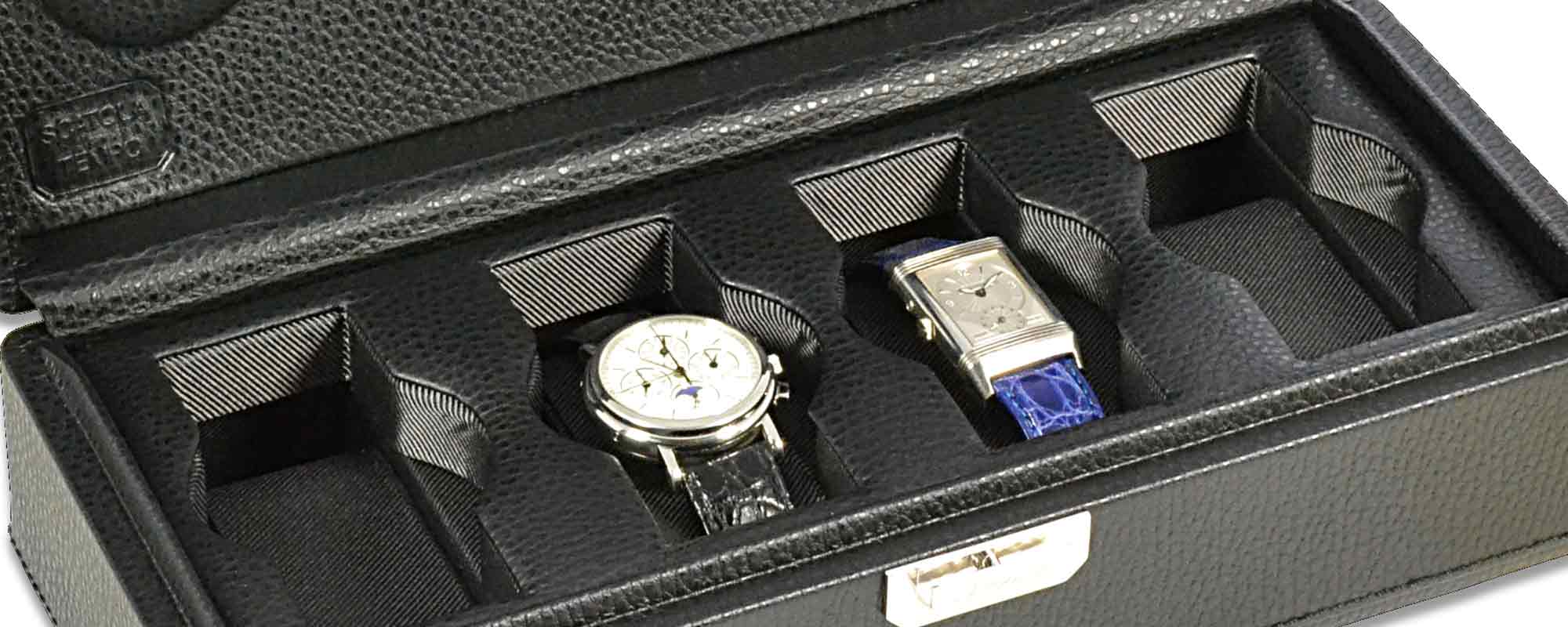 Fabrication 100% italienne. Scatola del Tempo est née de la volonté et l'initiative d'un collectionneur italien, M. Sandro Colarieti, qui souhaitait un remontoir de montres (watchwinder) du niveau de qualité des modèles de sa collection. Il ne put s'empêcher de le fabriquer lui-même, utilisant l'artisanat local et des matières de première qualité. Depuis, Scatola Del Tempo est connu dans le monde entier, distribué chez les plus grands joaillers.