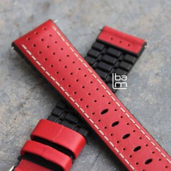 Bracelet Hirsch TIGER 22mm rouge, le bracelet des sportifs ! Cuir de veau perforé, inusable, résistant aux éraflures, à grain d’une remarquable finesse. Âme en HIRSCH Premium Caoutchouc. Sécurité intégrée dans les passants, boucle robuste en acier inoxydable dans un design HIRSCH Active. Systeme pompe flash attache rapide inclus